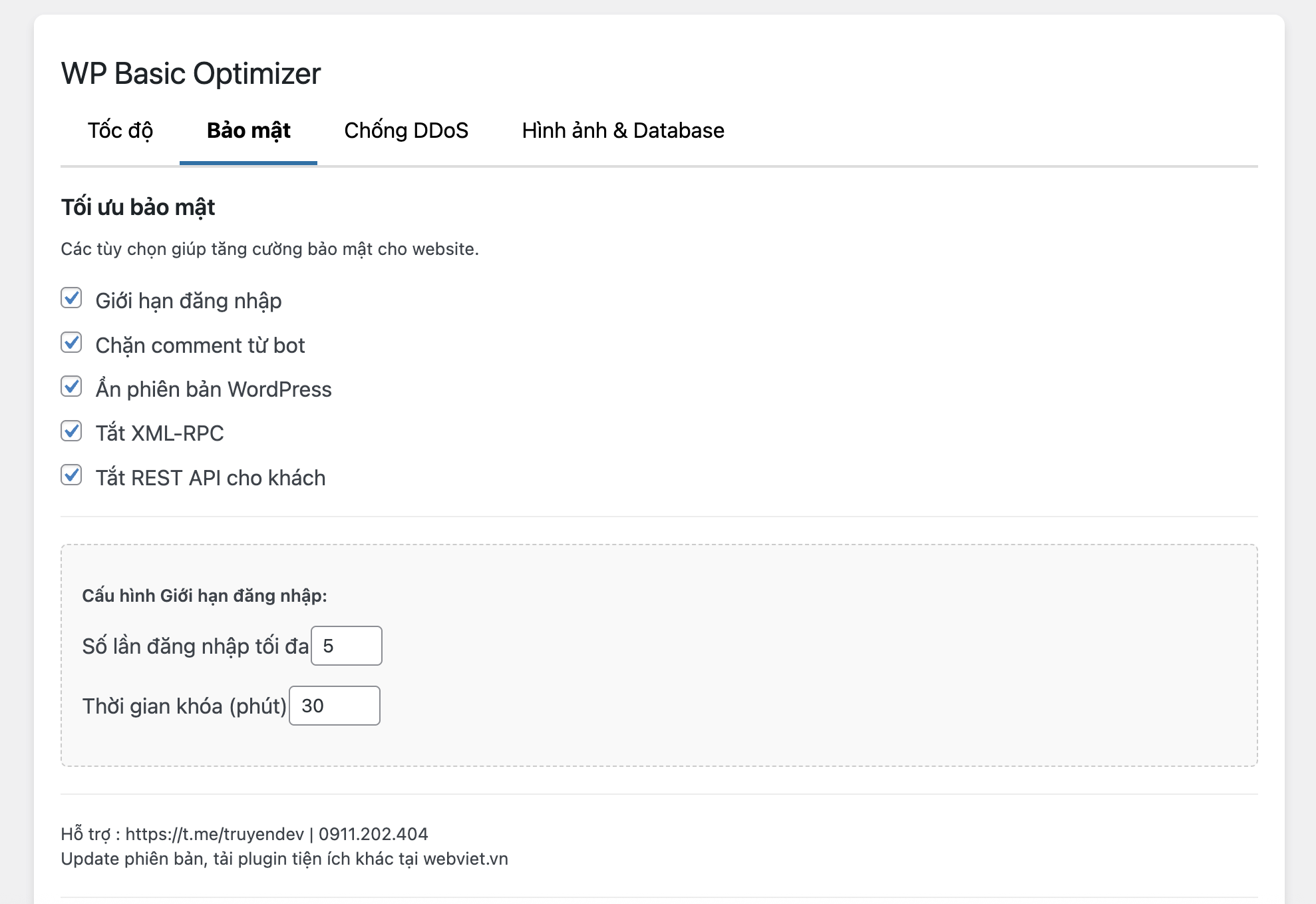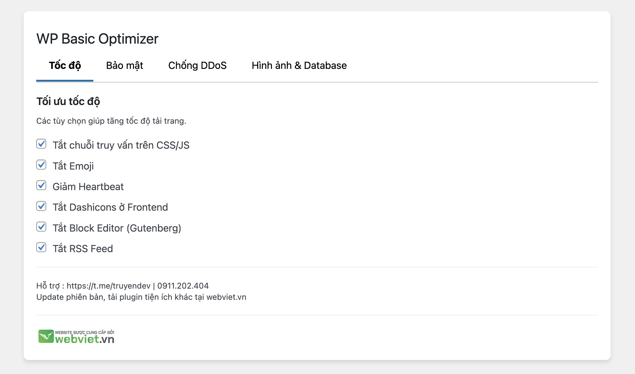 Giới thiệu plugin WP Basic Optimizer của Webviet.vn